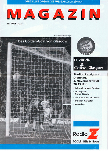 « 1 2 3 4 5 6 7 » »| 4/8 Total: 144 #61 – Trophäe | 1990–1999Frauenfussball: SDFL Schweizermeister 1993 #62 – Ausrüstung | 1990–1999Goalie-Handschuhe Jörg Stiel #63 – Ausrüstung | 1990–1999Goalie-Handschuhe Marco Pascolo #64 – Publikation (FCZ) | 1990–1999Junioren-Kalender 1995-97 #65 – Publikation (FCZ) | 1990–1999Juniorenkalender 1994 #66 – Vereinsakte | 1990–1999Kaderliste 1993/94 #67 – Fanartikel (offiziell) | 1990–1999Kleber Löwengebrüll #68 – Fanartikel (offiziell) | 1990–1999Krawatte 100-Jahr-Jubiläum FC Zürich #69 – Fanartikel (offiziell) | 1990–1999Leichte Daunenjacke weiss #70 – Mannschaftsfoto | 1990–1999Mannschaftsfoto 1994 #71 – Mannschaftsfoto | 1990–1999Mannschaftsfoto 1995/96 #72 – Mannschaftsfoto | 1990–1999Mannschaftsfotos 1993/94 #73 – Plakat | 1990–1999Mannschaftsposter FCZ Saison 1991/92 #74 – Publikation (extern) | 1990–1999Matchprogramm Anorthosis Famagusta FC - FCZ, 29.9.1998 #75 – Publikation (extern) | 1990–1999Matchprogramm Celtic Glasgow – FCZ, 20.10.1998 #76 – Publikation (FCZ) | 1990–1999Matchprogramm FCZ - Celtic Glasgow, 3.11.1998 #77 – Publikation (FCZ) | 1990–1999Matchprogramm FCZ-Jubiläumsturnier 1996 #78 – Publikation (extern) | 1990–1999Matchprogramm Newcastle United - FCZ, 4.11.1999 #79 – Publikation (extern) | 1990–1999Matchprogramm USA - FCZ, 9.2.1993 #80 – Memorabilia | 1990–1999Medaille 90. Geburtstag FIFA (1994) « 1 2 3 4 5 6 7 » »| 4/8 Total: 144